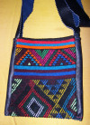Pochette ventrale en cuir, alfa, laine, bois argent et cuivre